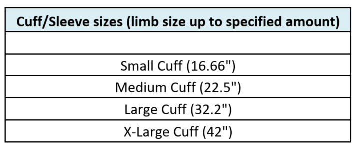 - The cuff design maintains the same width ratio across the different lengths to accommodate all limb sizes comfortably.